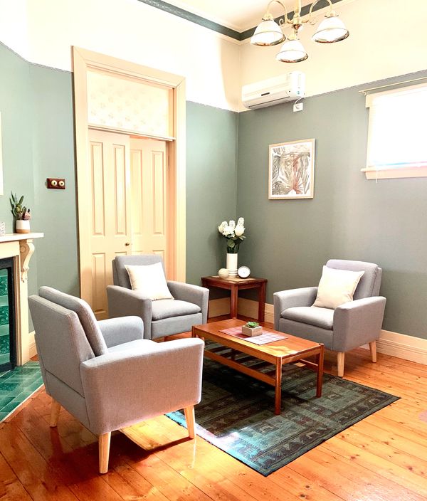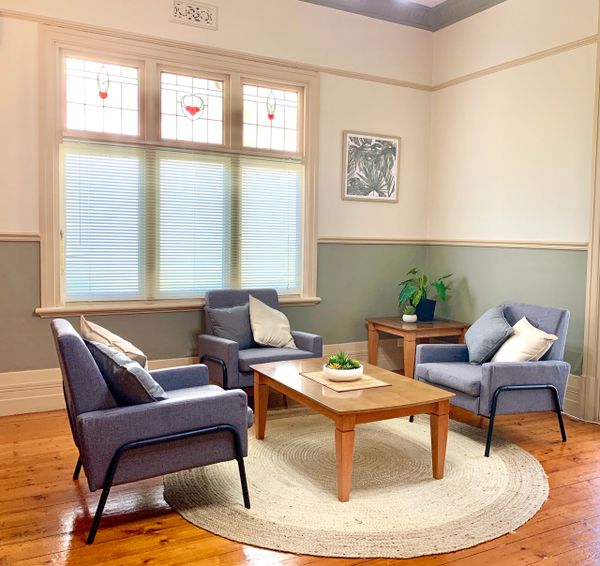 Suitable for psychologists, counsellors and allied health practitioners. Bright, private room with a small desk, comfy counselling chairs and a coffee table. Reverse cycle heating and cooling, printer and some storage space. Polished timber floor with large floor rug. Printer in room. Comfortable and relaxing space.